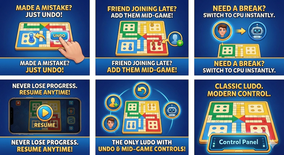 This ludo features unique player management feature. Now, join and leave easily.